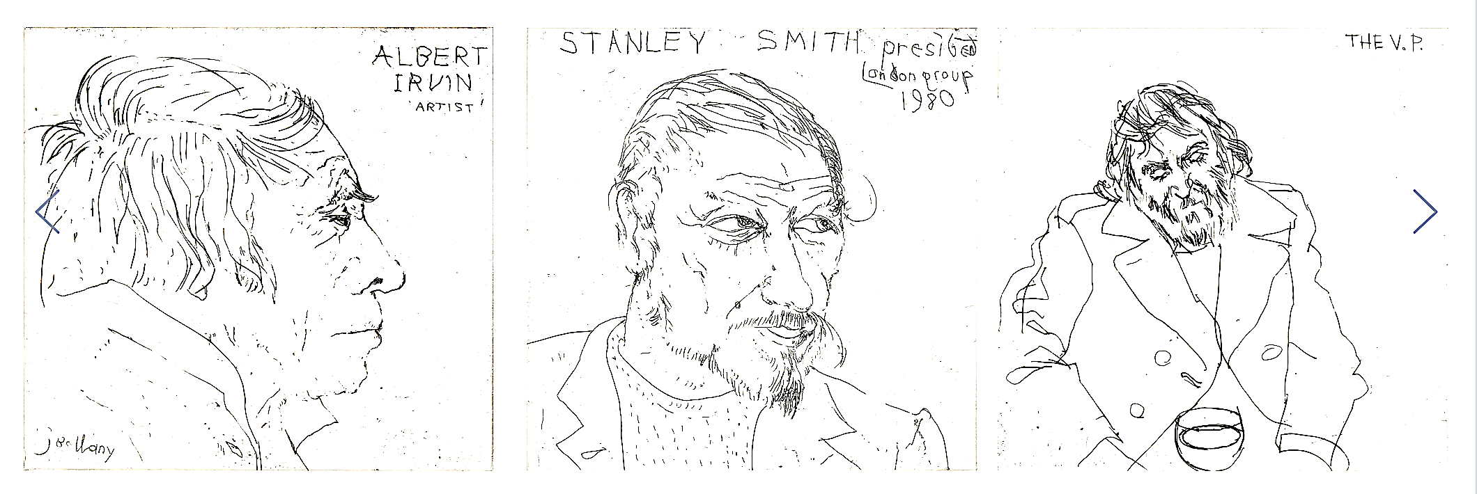 They come from a series of portraits that was created informally by leading members of The London Group in 1980 while they were preparing the Group’s annual exhibition. It includes work by Stan Smith (then president of the Group), John Bellany (vice-president), Albert Irvin, Jesse Watkins, Cyril Reason, Barry Martin, and the late Adrian Bartlett, who co-ordinated the project.