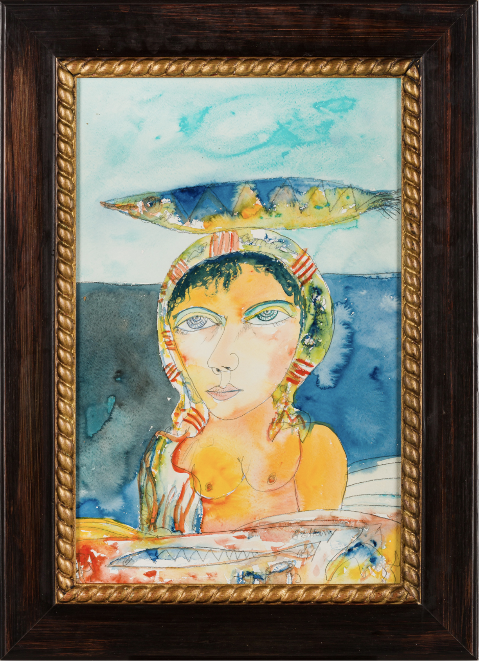 The classic Bellany image, to which he returned many times, inspired in part by his wife Helen and his own iconography of the Scottish fishing community where he spent his early years.