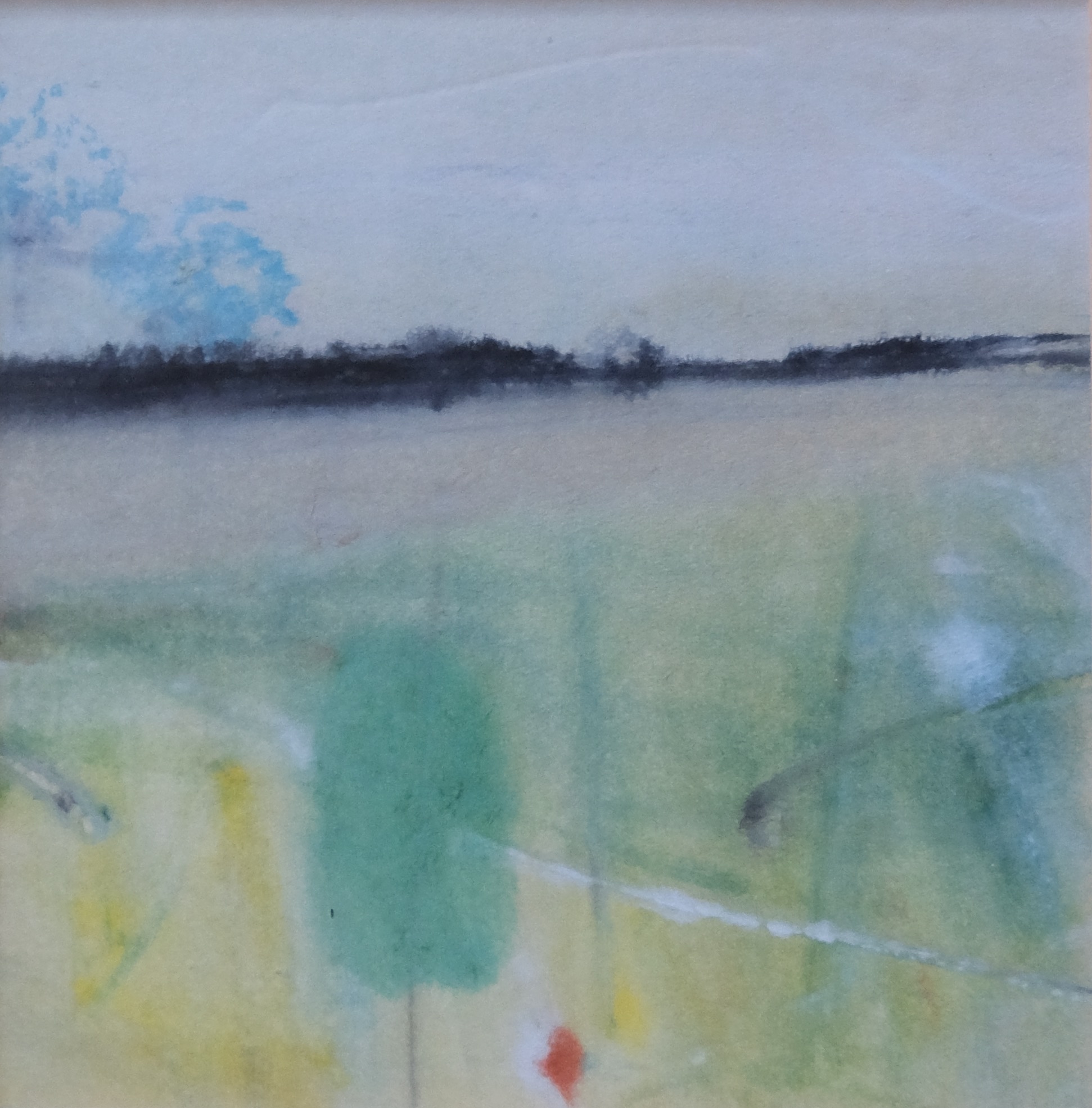 This painting is from a collection of small landscapes by Charles Duranty that were bought by the late Tim Manderson, a director of the William Heinemann publishing company, who became a friend of the artist. It is accompanied by a friendly exchange of several letters between the two of them from around 1970 in which they discuss Manderson’s acquisition of a set of similar small landscapes for his home. The other works from this set are also shown here.