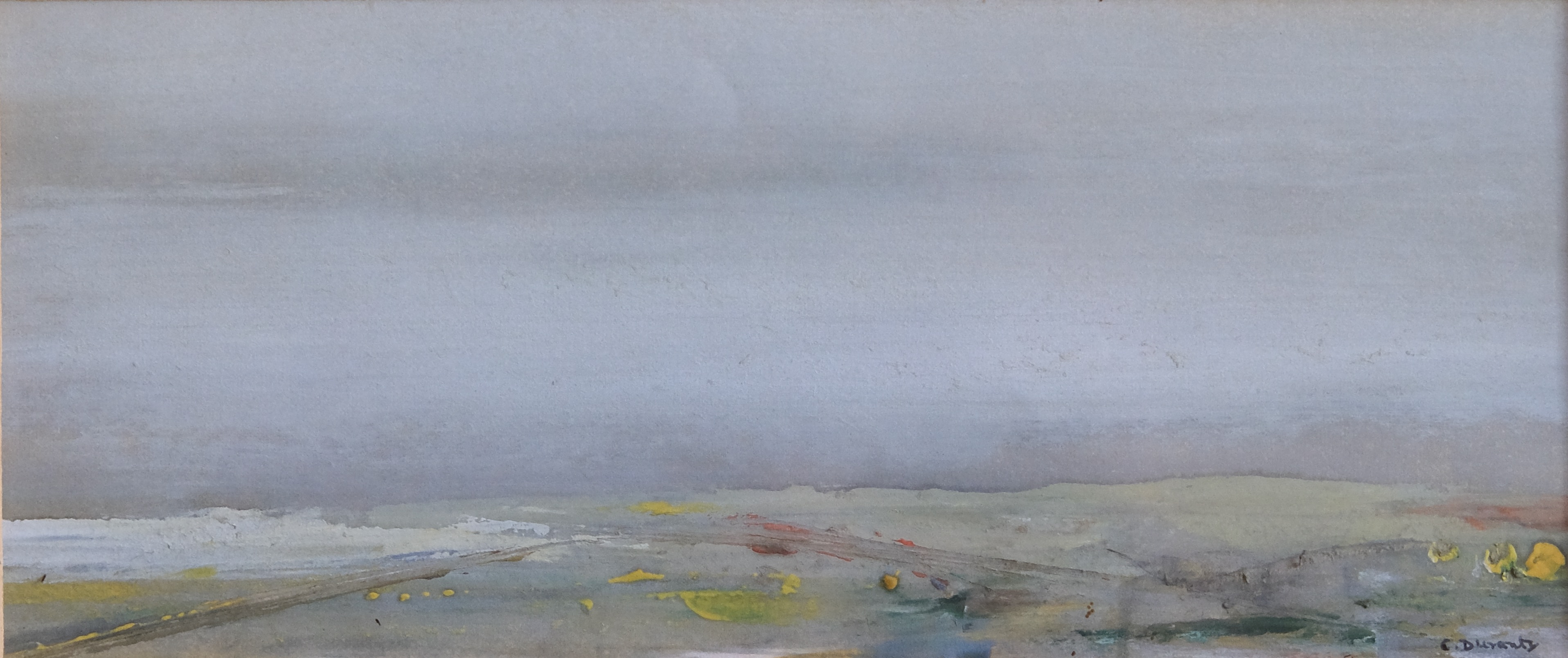 This painting is from a collection of small landscapes by Charles Duranty that were bought by the late Tim Manderson, a director of the William Heinemann publishing company, who became a friend of the artist. It is accompanied by a friendly exchange of several letters between the two of them from around 1970 in which they discuss Manderson’s acquisition of a set of similar small landscapes for his home. The other works from this set are also shown here.