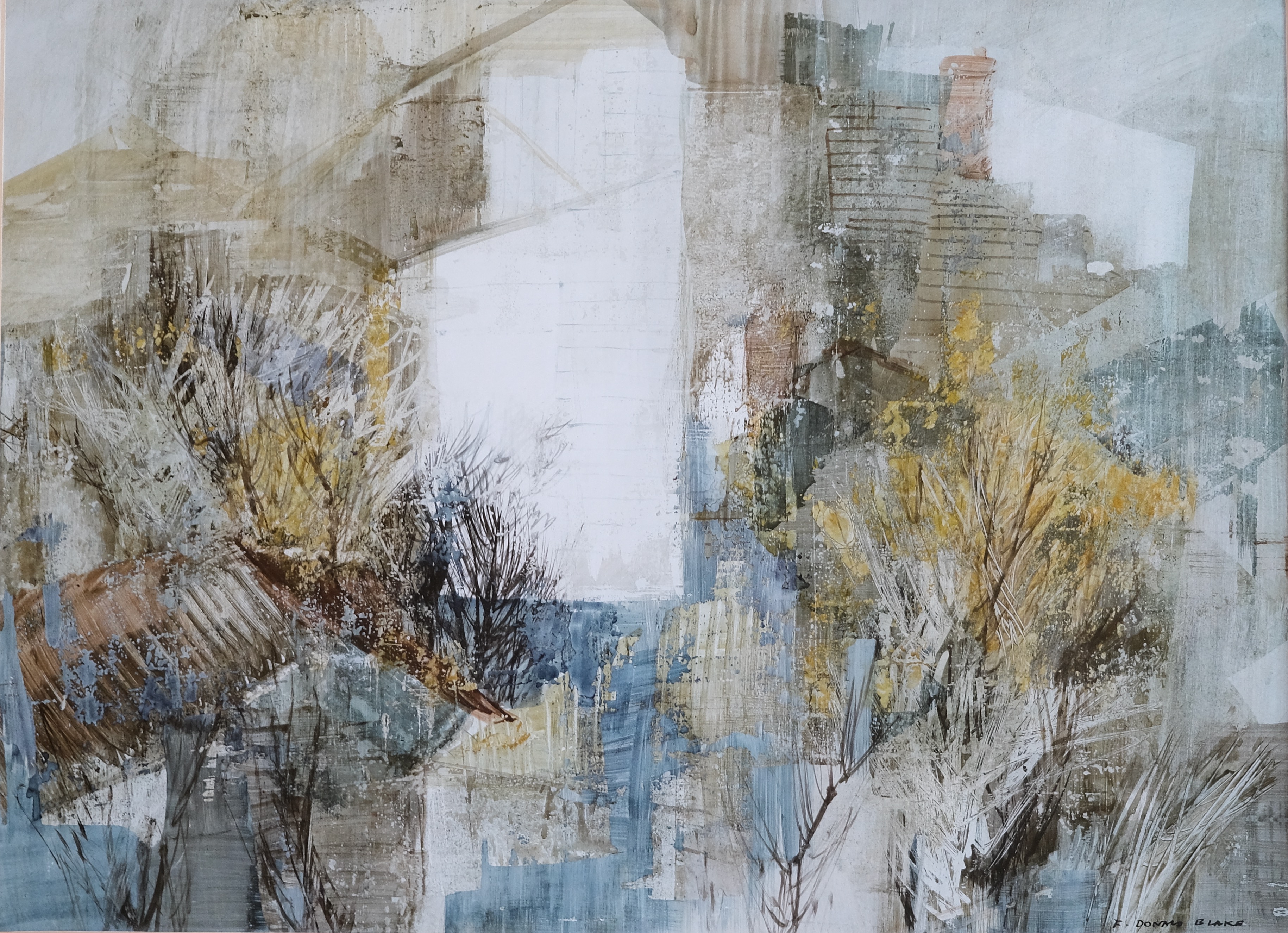 A classic Donald Blake work, a semi-abstract wooded landscape (Tuscany? Cornwall? Scotland?) with ghostly hints of buildings - and at the centre this mysterious white wall.