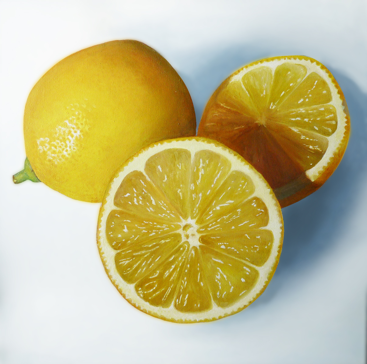 Peter’s talent for realism shines in these generous 60 x 60cm succulent renderings of fruit.