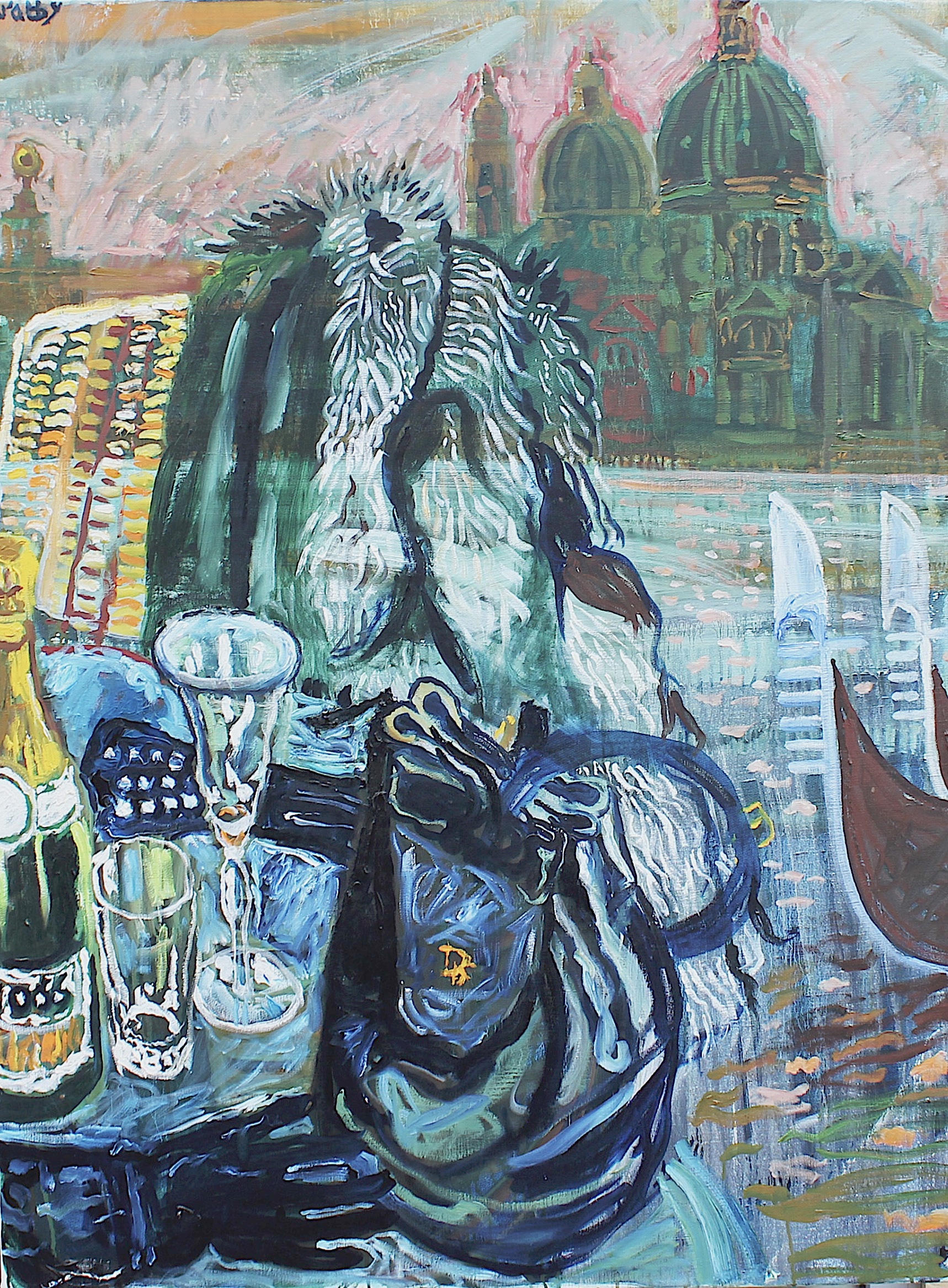 Bratby often included his woolly coat in his pictures of Venice. The city that became a regular theme in the best work of his later years.